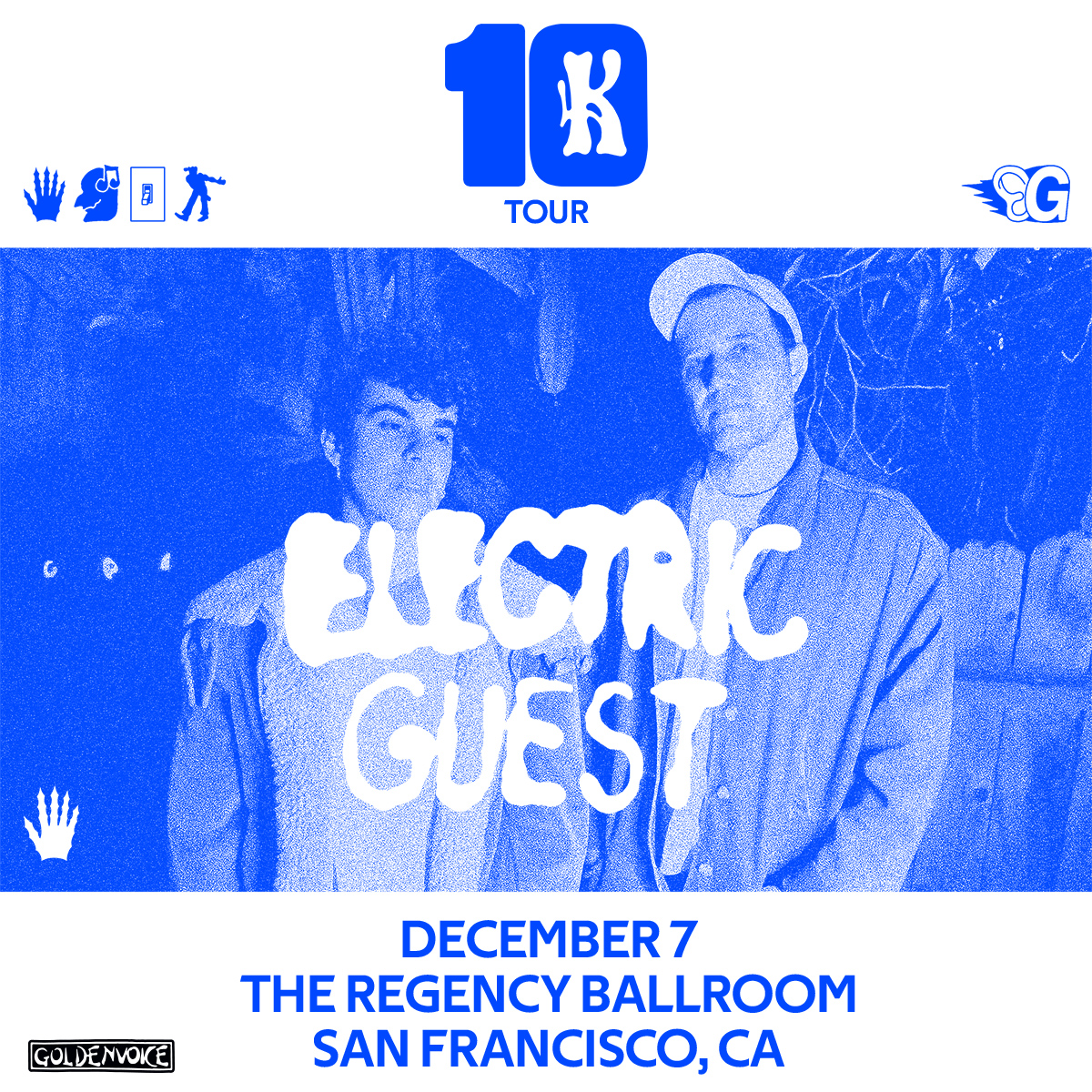 The witty, funky pop duo Electric Guest brings their infectious mix of soul, disco, and indie pop to The Regency Ballroom. Featuring Asa Taccone and Matthew Compton, the LA band tours in support of their new 2025 album 10K on Sunday, December 7!