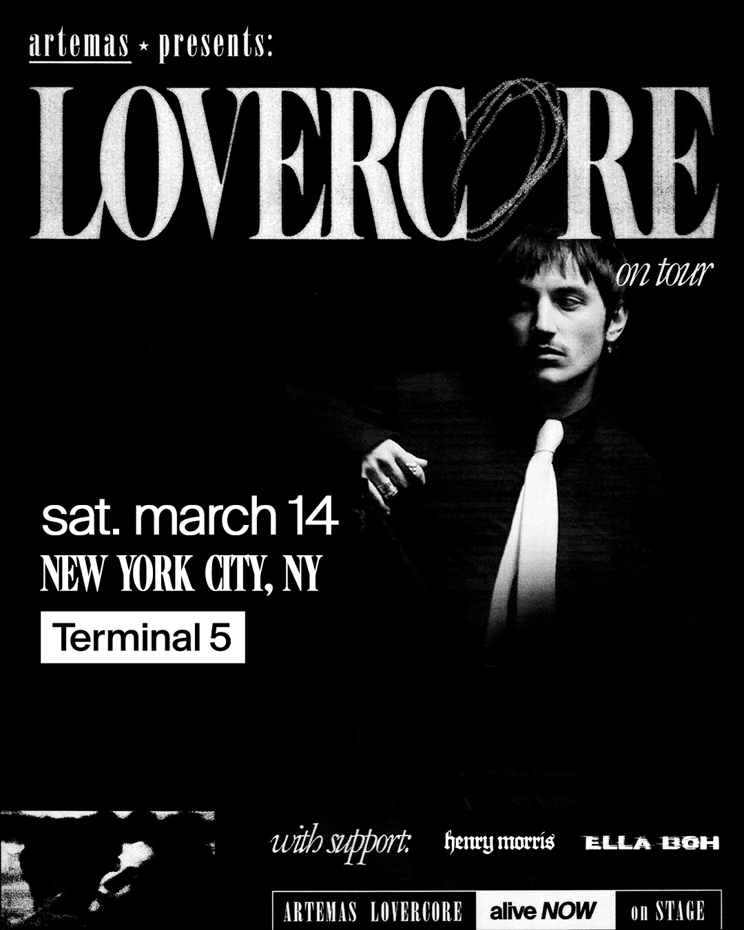 Artemas, the English alt-pop sensation behind the 3x Platinum viral smash "I Like the Way You Kiss Me," blends darkwave atmospherics with catchy, brutally honest lyrics. See him live at Terminal 5 on Saturday, March 14!