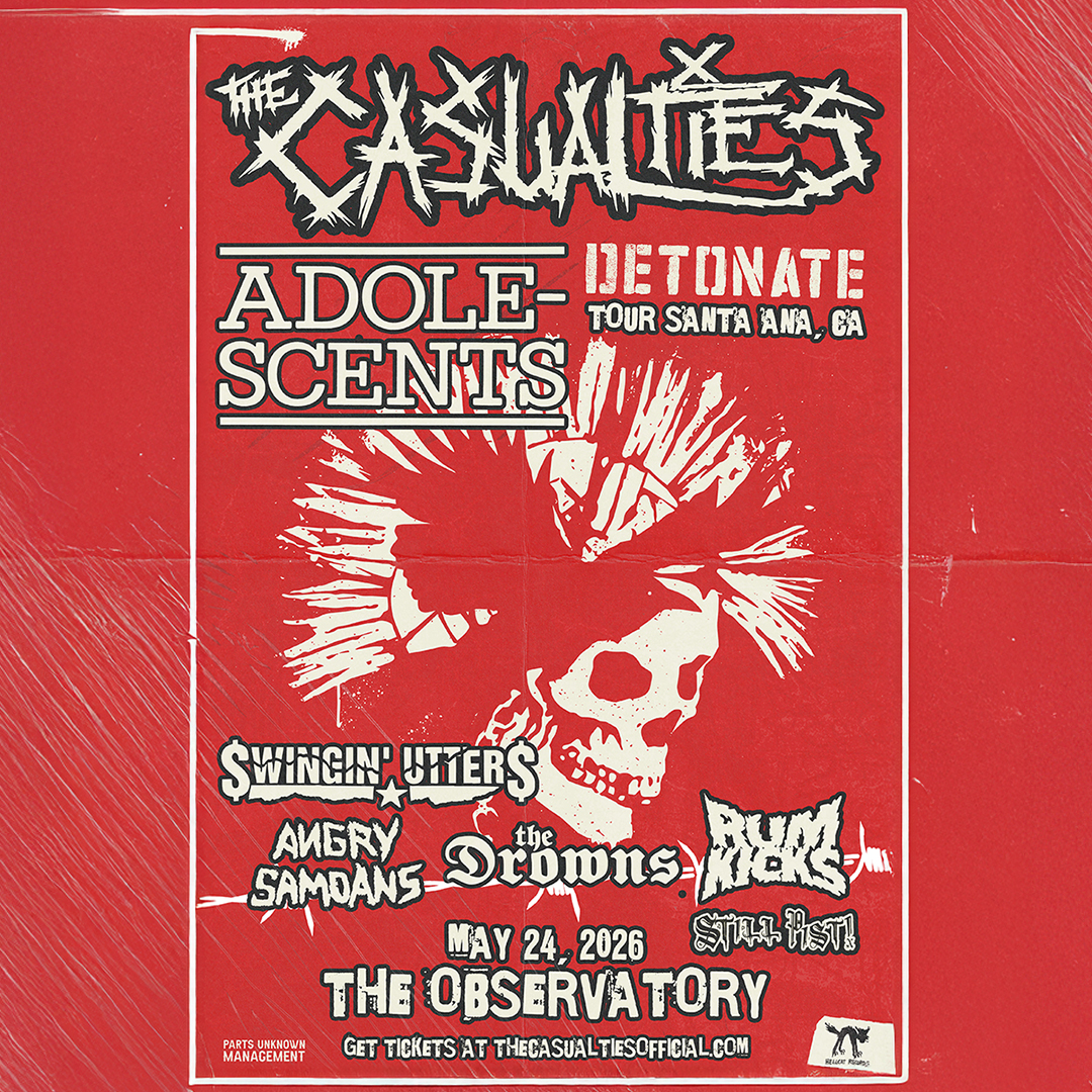 NYC street punk legends The Casualties have been delivering aggressive, old-school hardcore since 1990. Now touring behind their explosive new album 'Detonate' on Hellcat Records, catch them live with The Adolescents at The Observatory in Santa Ana on Sunday May 24!