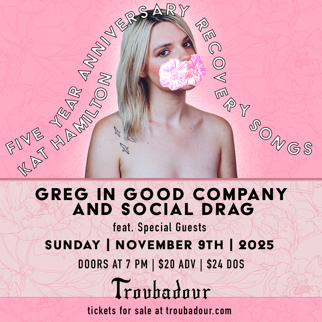 Los Angeles singer-songwriter Kat Hamilton celebrates the 5-year anniversary of Recovery Songs, her critically acclaimed debut album blending rock, pop, Americana, and emo. See her live at Troubadour on November 9!