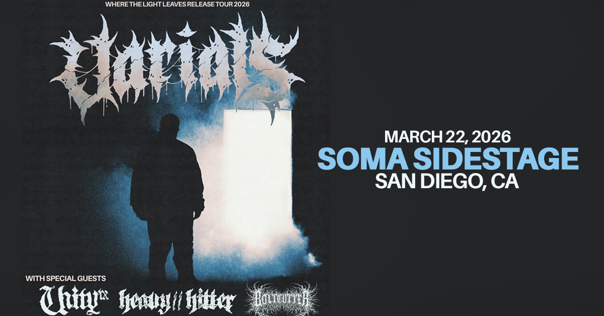 Philadelphia metalcore outfit Varials delivers monstrous breakdowns, nu-metal groove, and raw East Coast intensity across four studio albums on Fearless Records. See them on their "Where The Light Leaves" headline tour at SOMA Sidestage on Sunday March 22!