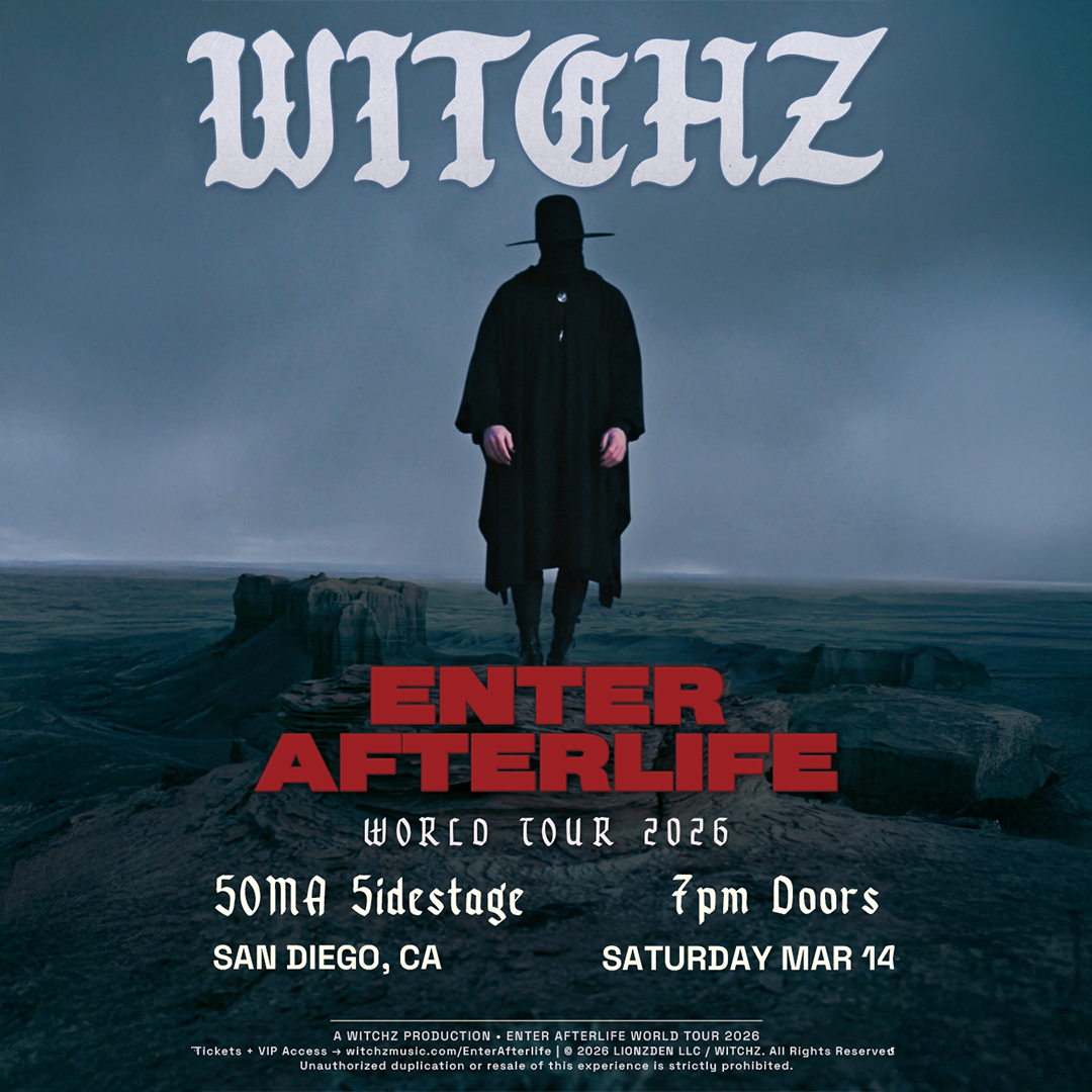 WITCHZ, the Las Vegas-based solo artist delivering dark, bass-heavy alt-pop and electronic-phonk with bleak vocals and southwestern nostalgia, brings his immersive ENTER AFTERLIFE World Tour to SOMA Sidestage on Saturday March 14!