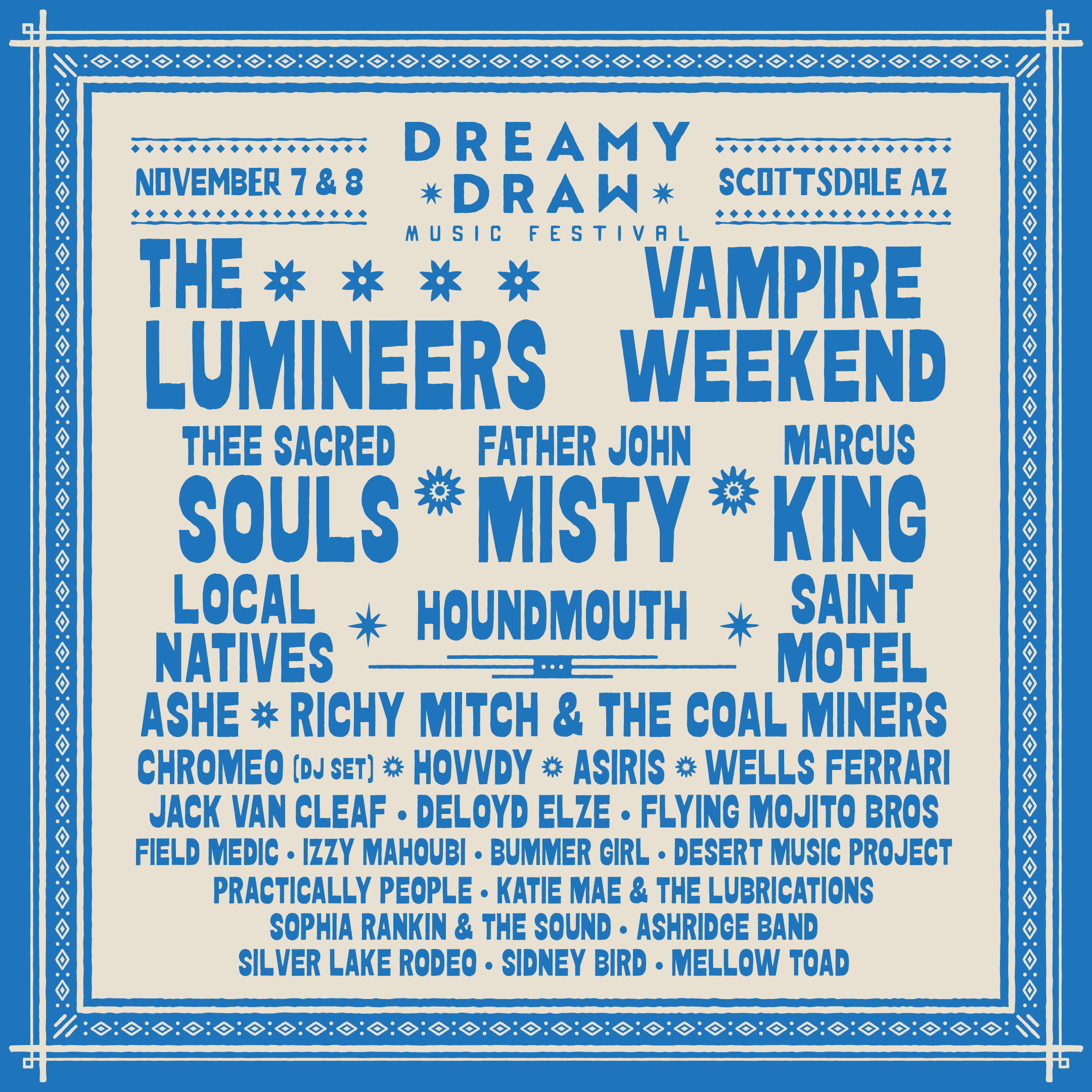 *SCOTTSDALE, AZ* Dreamy Draw Music Festival blends modern sound, western soul, and the mystical beauty of the Arizona desert into a fully immersive experience, at Scottsdale Civic Center on Fri November 8 & Sat November 9! Headlined by The Lumineers and Vampire Weekend plus Thee Sacred Souls, Father John Misty and more! It’s a space for wanderers, seekers, and lovers of sound and culture to gather and celebrate.