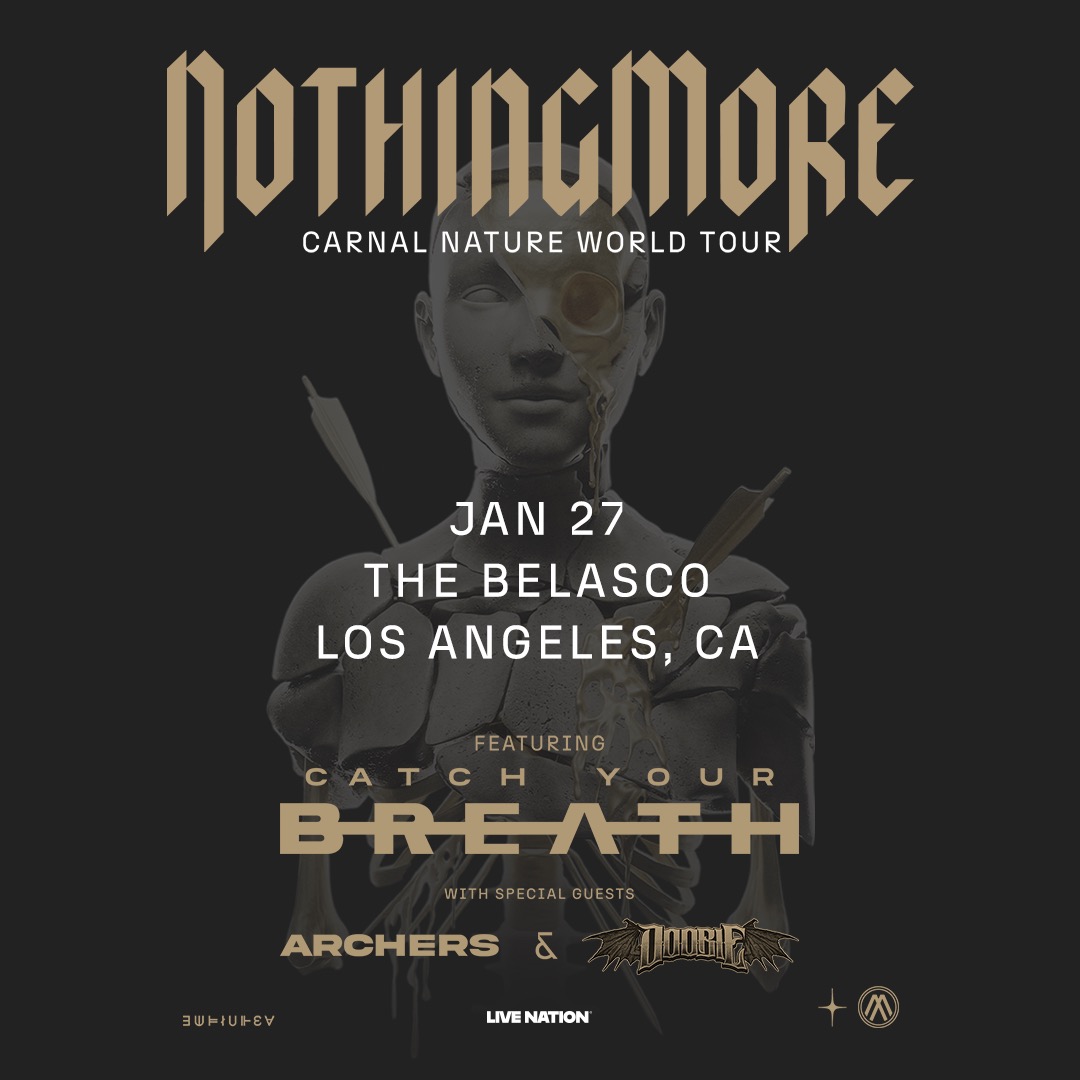 Rock music phenoms Nothing More continue their skyrocketing success following the summer 2024 release of their universally acclaimed Better Noise Music triumph, Carnal. Fueled by the reception of massive singles "Angel Song" featuring David Draiman of Disturbed, "Freefall" featuring Chris Daughtry and "House On Sand" featuring Eric Vanlerberghe of I Prevail, the album and the band's run of subsequent touring in support of the release have further galvanized already passionate fanbase while vaulting Nothing More to new career heights. See them live at Belasco Theater on Tuesday January 27!
