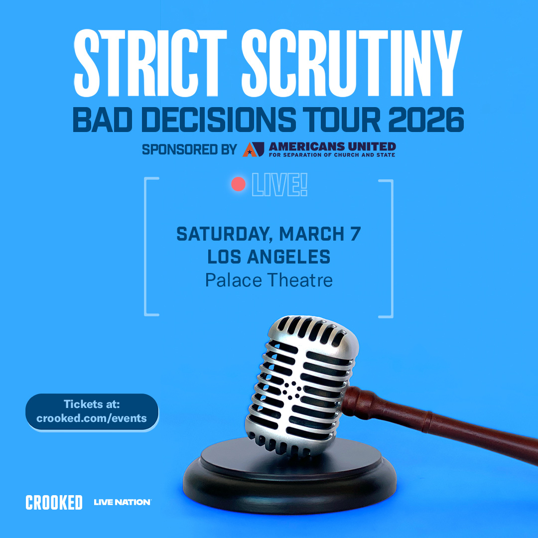 Strict Scrutiny provides in-depth, accessible, and irreverent analysis of the Supreme Court and its cases, culture, and personalities. Each week, Leah, Kate, and Melissa break down the latest headlines and biggest legal questions facing our country, emphasizing what it all means for our daily lives. Check out their Bad Decisions Tour live at The Palace Theatre on Saturday March 7!