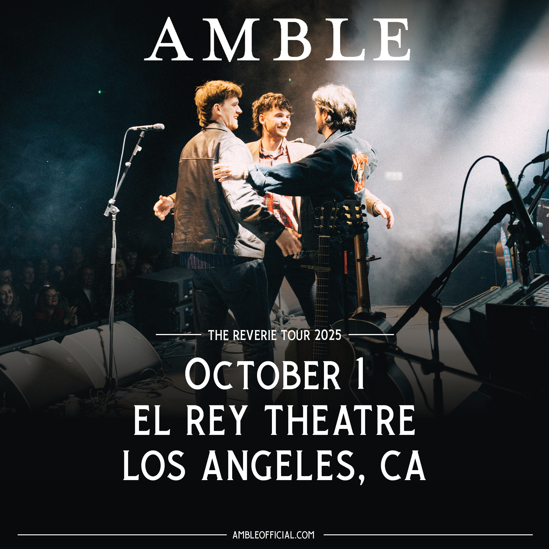 Instruments in hand, three friends gather in a circle and sing the kinds of stories typically reserved for classic literature. They not only channel the power of the bond between them, but they also tap into the serenity of the landscape around them. Irish trio Amble harness a rare magic threaded into the fabric of their novelistic folk. Originally hailing from the West Region of Ireland, the group— Robbie Cunningham (lead vocals/guitar), Ross McNerney (mandolin/bouzouki), and Oisin McCaffrey (vocals/guitar)—have unassumingly gone from quitting their day jobs in rural Ireland to the doorstep of an international breakthrough buoyed by over 100 million streams and sold-out shows around the world. Their relatability, intimate storytelling, and authenticity marry seamlessly with no-frills acoustic instrumentation, calm-inducing soundscapes, and heavenly natural harmonies. See them live at El Rey Theatre this Wednesday!