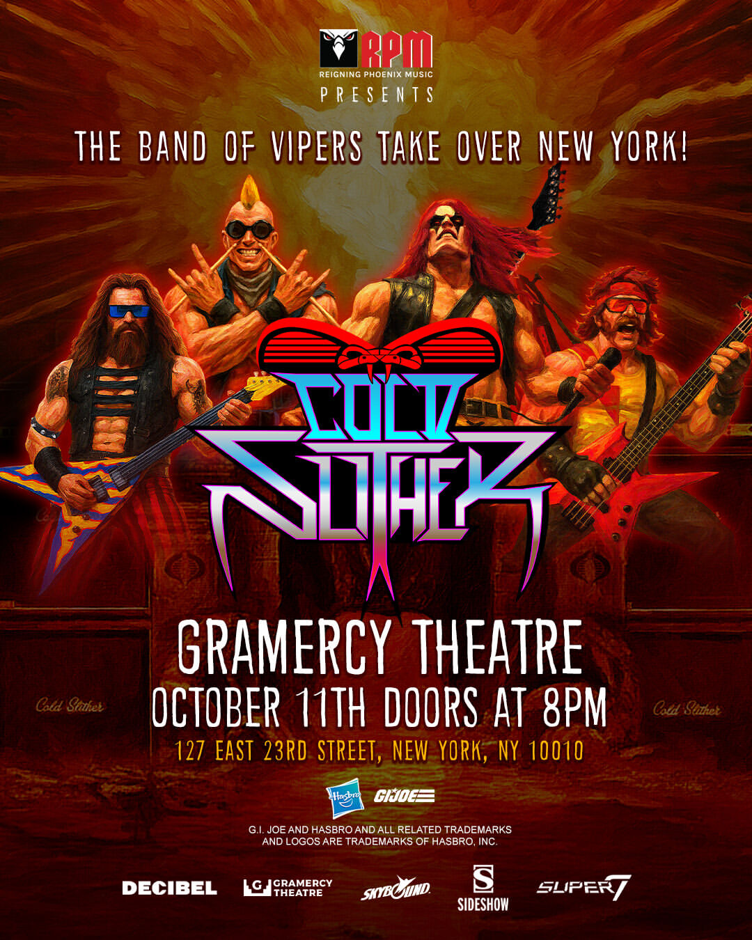Gramercy Theatre • Oct 11 Install & Claim Born from the 1985 G.I. Joe cartoon, Cold Slither is a heavy metal supergroup featuring members of Exhumed, Gruesome, and KMFDM. They deliver raw metal fury with guttural guitars and thunderous percussion. See them at Gramercy Theatre this Saturday!