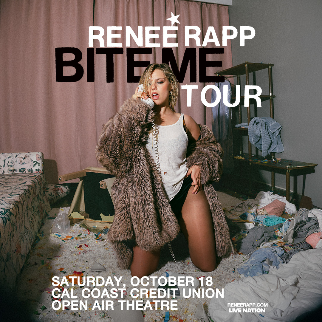 Cal Coast Credit Union Open Air Theatre at SDSU • Oct 18 Install & Claim From Broadway's Regina George to pop star, Reneé Rapp brings her sexy, unfiltered sound to life on her BITE ME TOUR. See her at Cal Coast Credit Union Open Air Theatre at SDSU on Saturday October 18!