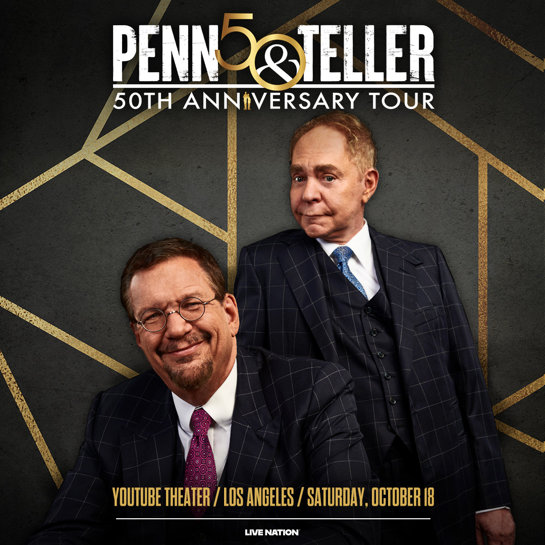 From humble beginnings nearly 50 years ago busking on the streets of Philadelphia to acclaimed sold-out runs on Broadway, to the longest-running, and one of the most beloved resident headlines in Las Vegas history, magic's legendary duo - Penn & Teller - continue to defy labels and at times physics and good taste, by redefining the genre of magic and inventing their own very distinct niche in comedy. See their 50th Anniversary Tour live at YouTube Theater this Saturday!