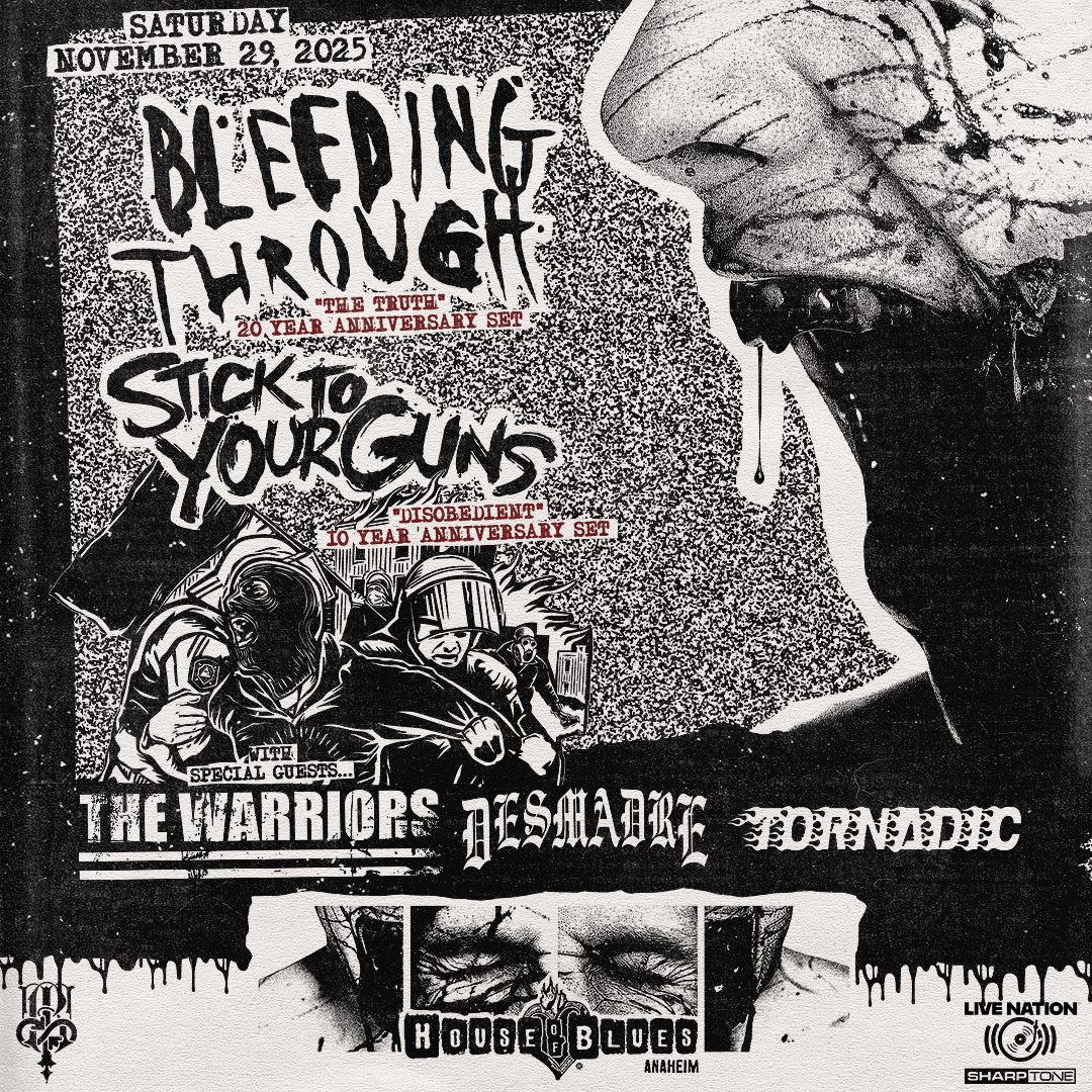 House of Blues Anaheim • Nov 29 Bleeding Through, Stick to Your Guns, The Warriors, Desmadre & Tornadic are performing on Saturday, November 29 at House of Blues Anaheim