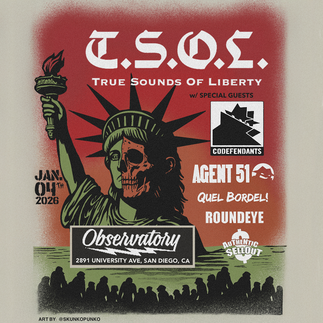 The Observatory North Park • Jan 4, 2026 Co-Defendants, T.S.O.L., Authentic Sellout, Round Eye & Agent 51 are performing on Sunday, January 4, 2026 at The Observatory North Park