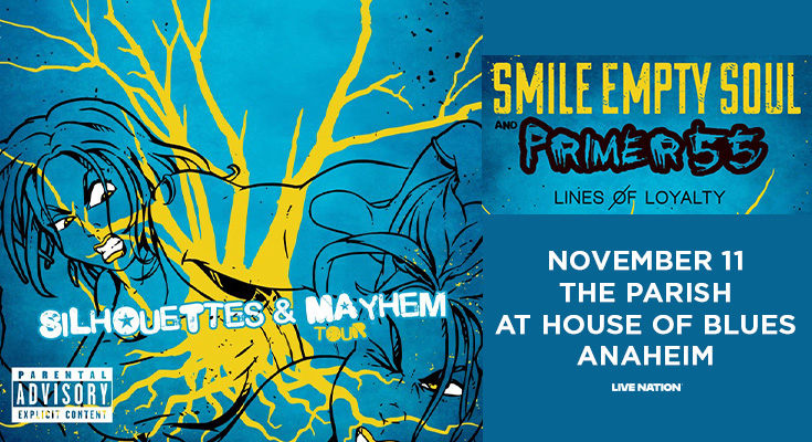 The Parish at House of Blues Anaheim • Nov 11 Smile Empty Soul, Primer 55 & Lines of Loyalty are performing on Tuesday, November 11 at The Parish at House of Blues Anaheim