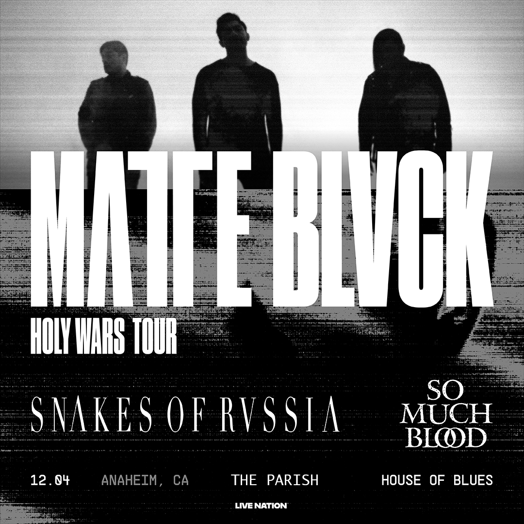 The Parish at House of Blues Anaheim • Dec 4 Matte Blvck, Snakes Of Russia & So Much Blood are performing on Thursday, December 4 at The Parish at House of Blues Anaheim