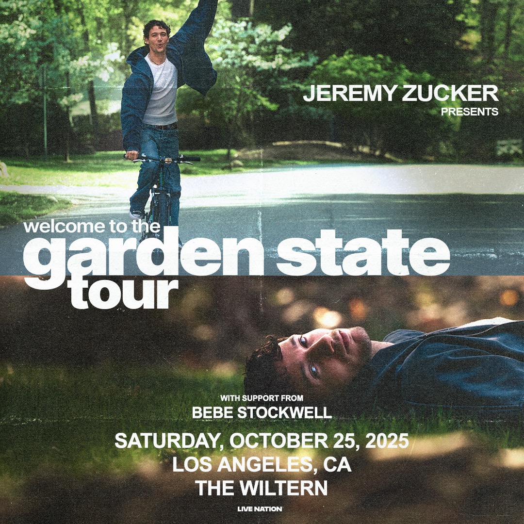 Multi-platinum singer-songwriter Jeremy Zucker creates emotionally rich indie-pop exploring love and personal growth. Known for vulnerable lyricism and hits like "comethru," he continues his "Welcome to the Garden State Tour" at The Wiltern this Saturday!