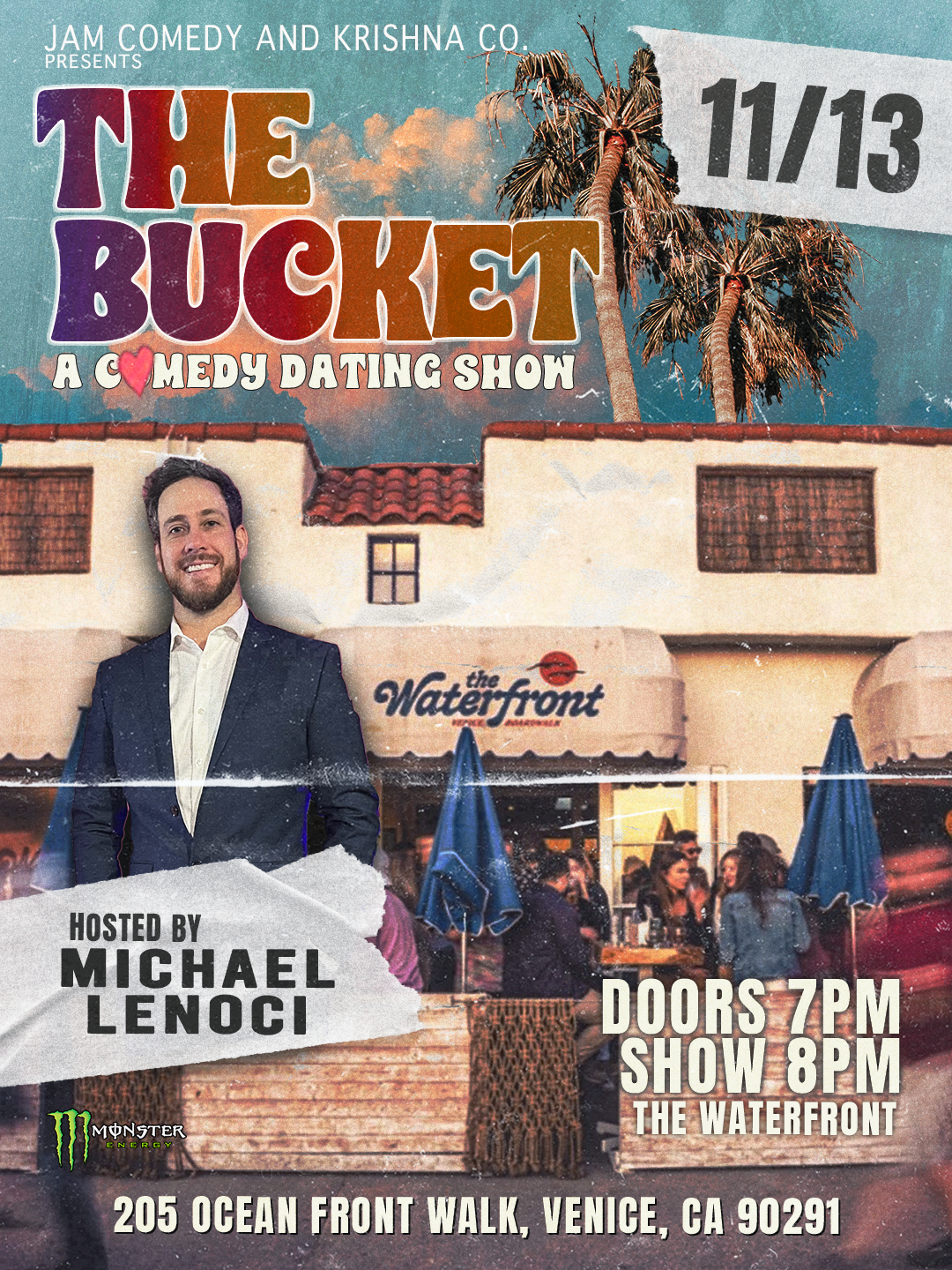 LA comedian Michael Lenoci, selected for Just For Laughs New Faces and featured on FOX and Comedy Central, brings "The Bucket" singles comedy show! This wildly popular live event blends standup with dating segment fun. See him at The Waterfront Venice on Thursday, November 13!