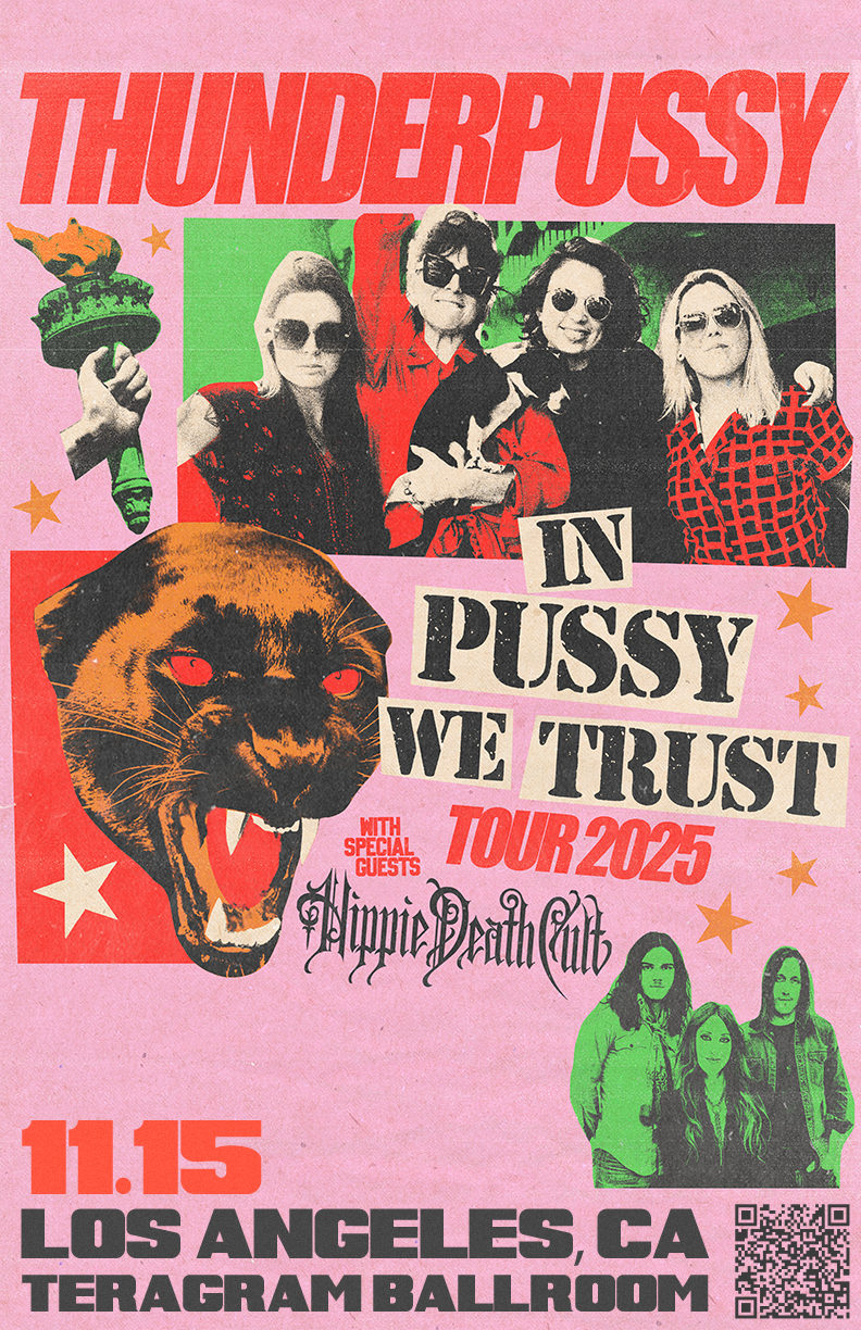 Seattle rock powerhouse Thunderpussy delivers electrifying '70s-inspired sound with their latest album "West," featuring Pearl Jam's Mike McCready. Celebrating 10 years of high-energy performances, see them live at Teragram Ballroom on Saturday, November 15!