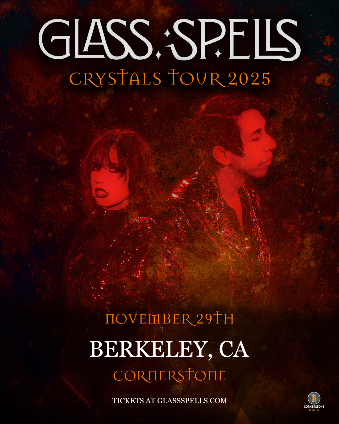 Cornerstone • Nov 29 San Diego synth-pop duo Glass Spells blend dreamy atmosphere with infectious hooks and powerful vocals. They've opened major festivals alongside New Order and Tears for Fears. Catch them live at Cornerstone on Saturday, November 29!