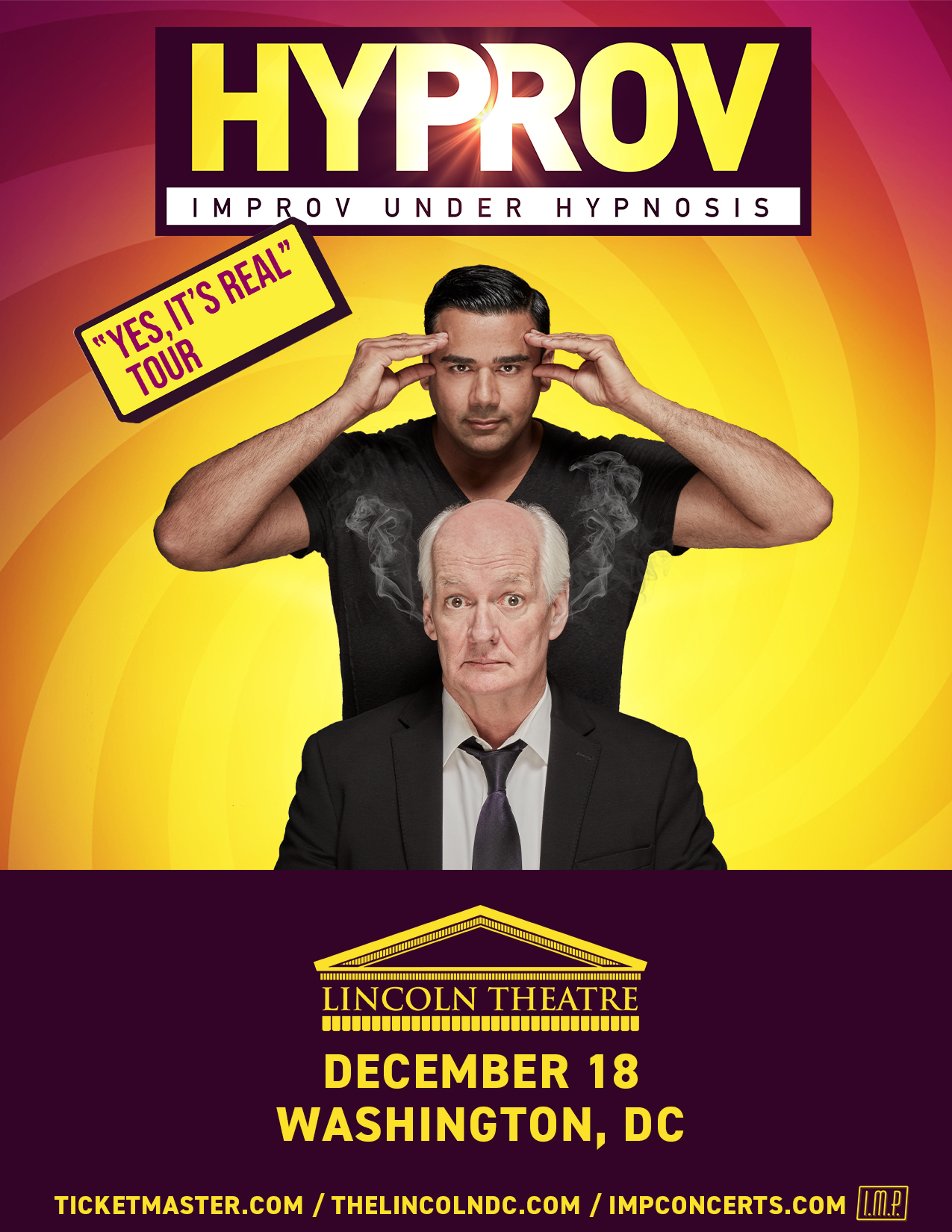 The most interactive comedy show in the world! HYPROV is a live show that combines the best of hypnosis and improv comedy with hilarious consequences! The only show where an audience member becomes the star! You'll have an unforgettable time watching your friends*…or yourself, become hypnotized on stage by World Renowned Hypnotist, Asad Mecci live at Lincoln Theatre on Thursday December 18!