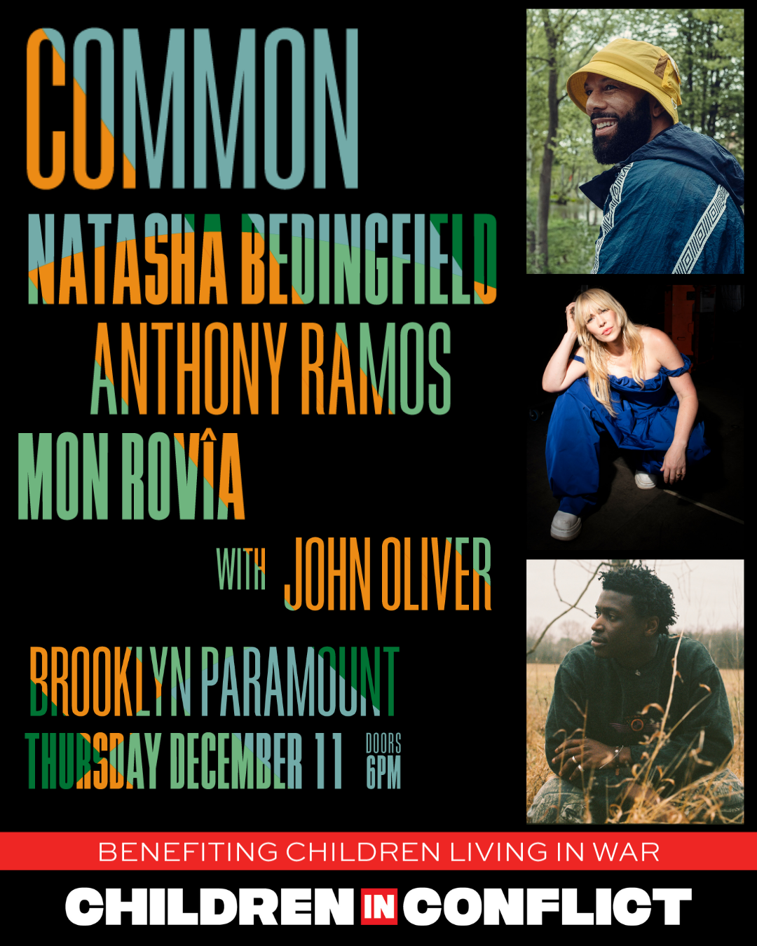 Join us for an unforgettable evening of music and purpose, hosted by Emmy Award winner John Oliver and featuring performances by Oscar, Grammy and Emmy Award winner Common, Grammy-nominated singer-songwriter Natasha Bedingfield, Spotify "Artist to Watch" Mon Rovîa, and special surprise guests, for the Children In Conflict Show at Brooklyn Paramount this Thursday! This isnt just a concert - its a powerful call to action to protect children living through the worlds worst conflicts.