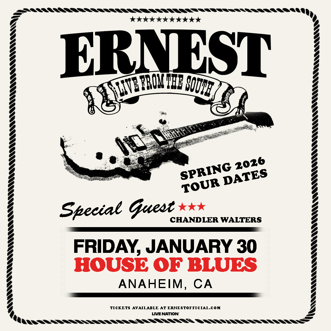 House of Blues Anaheim • Jan 30, 2026 ERNEST, the Nashville native behind 11 No.1 hits including the Grammy-nominated "I Had Some Help," brings his Live From the South Tour to House of Blues Anaheim on Friday, January 30, 2026! Don't miss this 4x ACM-nominated country hitmaker live!