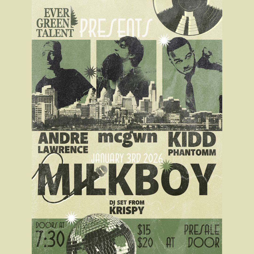 Milkboy • Jan 3, 2026 New York's own Andre Lawrence brings his genre-bending sound pushing beyond hip-hop alongside mcgwn and Kidd Phantom for a night of fresh talent. Catch this rising lineup at Milkboy on Saturday, January 3!
