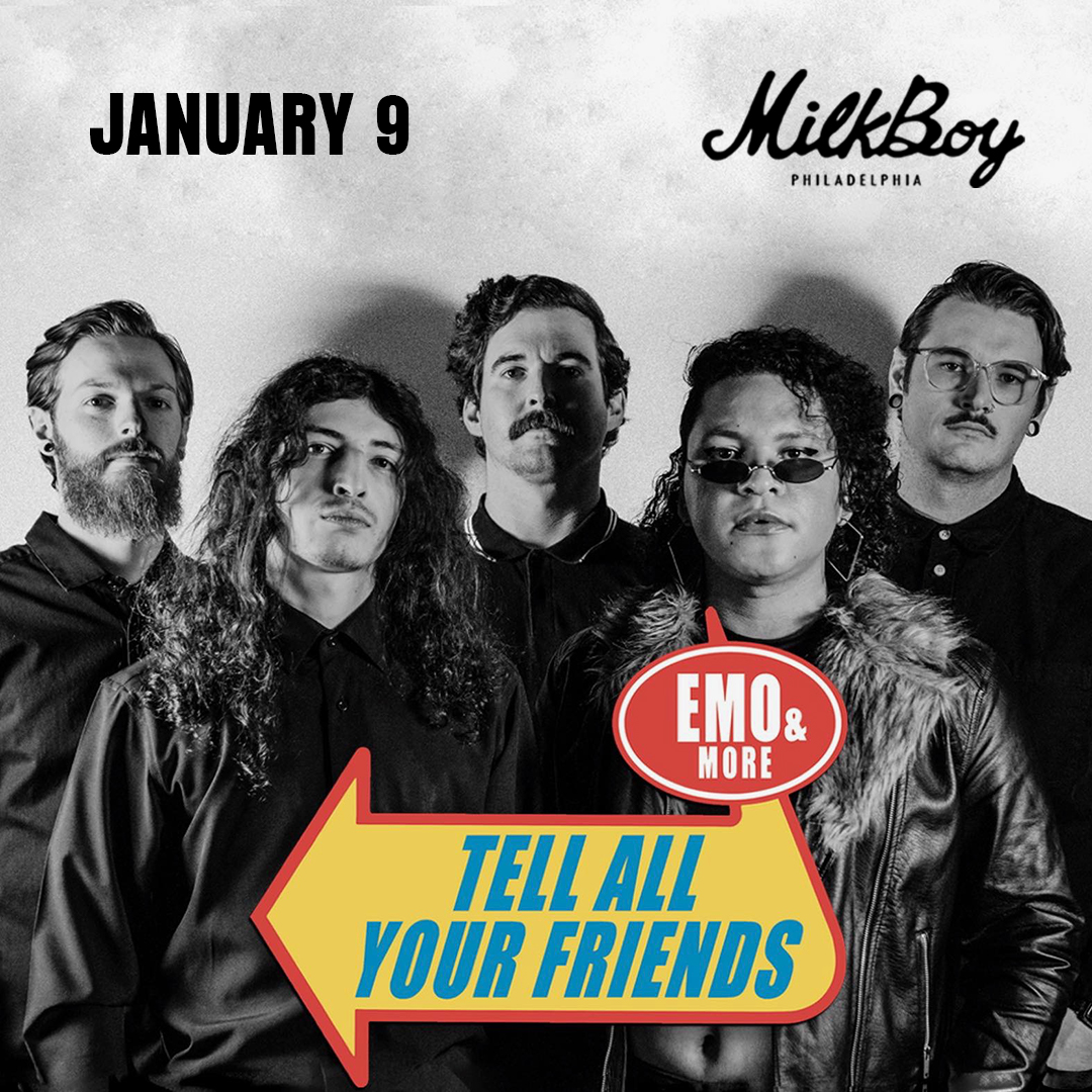 Tell All Your Friends, Philly Area's Premier LIVE BAND Emo Night experience, brings the bleeding-heart nostalgia of the mid-2000s emo boom to Milkboy on Friday, January 9! Sing your heart out to all your favorite Emo classics, unexpected deep cuts, and so much more!