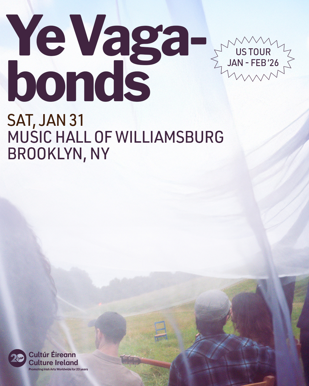 Irish brothers Brían and Diarmuid Mac Gloinn are Ye Vagabonds, at the fore of a new wave of Irish folk. Winners of BBC and RTÉ Folk Awards, they blend traditional Irish music with Appalachian harmonies. See them at Music Hall of Williamsburg on Saturday, January 31, 2026!