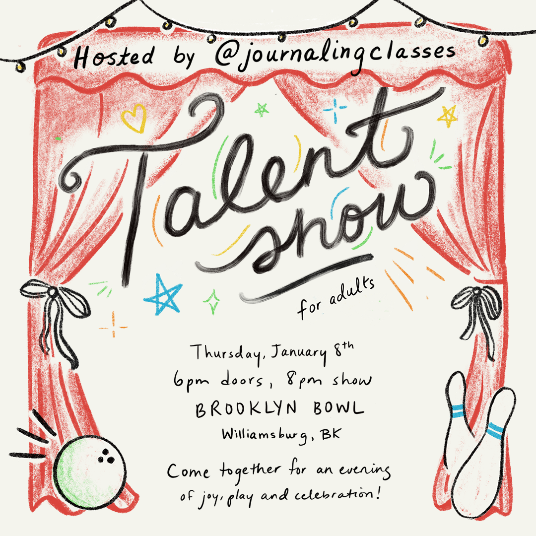 Brooklyn Bowl • Jan 8, 2026 Get weird and creative at Adult Talent Show, a variety night where anything goes! From music and dance to comedy and magic, this unique event hosted by Emily Chertow celebrates all talents. Join the fun at Brooklyn Bowl on Thursday, January 8, 2026!