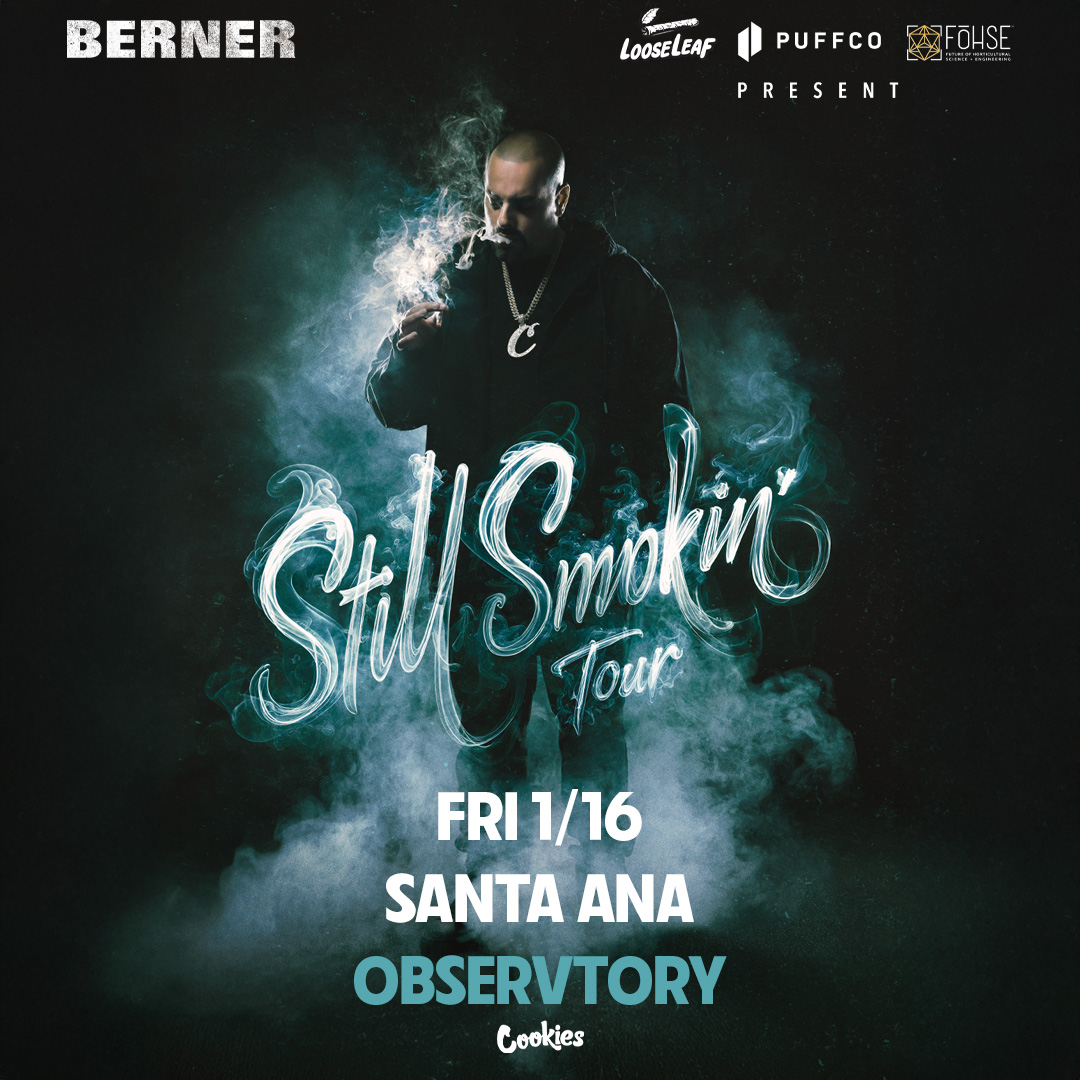 American rapper and entrepreneur Berner made a slow rise from the mixtape underground in the 2000s, later signing with Wiz Khalifa’s Taylor Gang Records in 2012 for the release of his fourth set, Urban Farmer. In addition to his solo work, Berner is also a prolific collaborator, issuing over a dozen collaborations with the likes of the Jacka, B-Real, Cam’ron, Styles P, Young Dolph, and Mozzy. A vocal proponent of marijuana, he also owns a shop selling associated clothing and lifestyle accessory items. See him live The Observatory on Friday January 16!