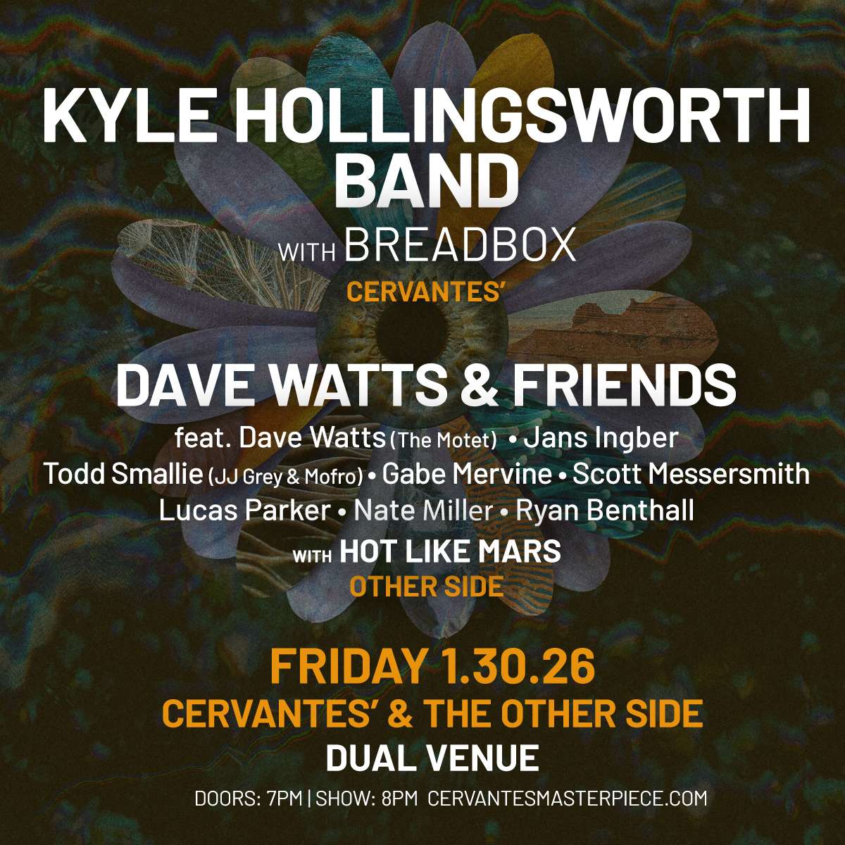 Decades ago, Kyle Hollingsworth set out on a career in music. Today, as a member of acclaimed jam masters The String Cheese Incident, Hollingsworth is revered by both peers and fans for his ability to write and perform in a mosaic of styles, from rock to classical, ragtime to bebop. Check out the Kyle Hollingsworth Band plus many other guests at Cervantes' and The Other Side - DUAL VENUE on Friday January 30!