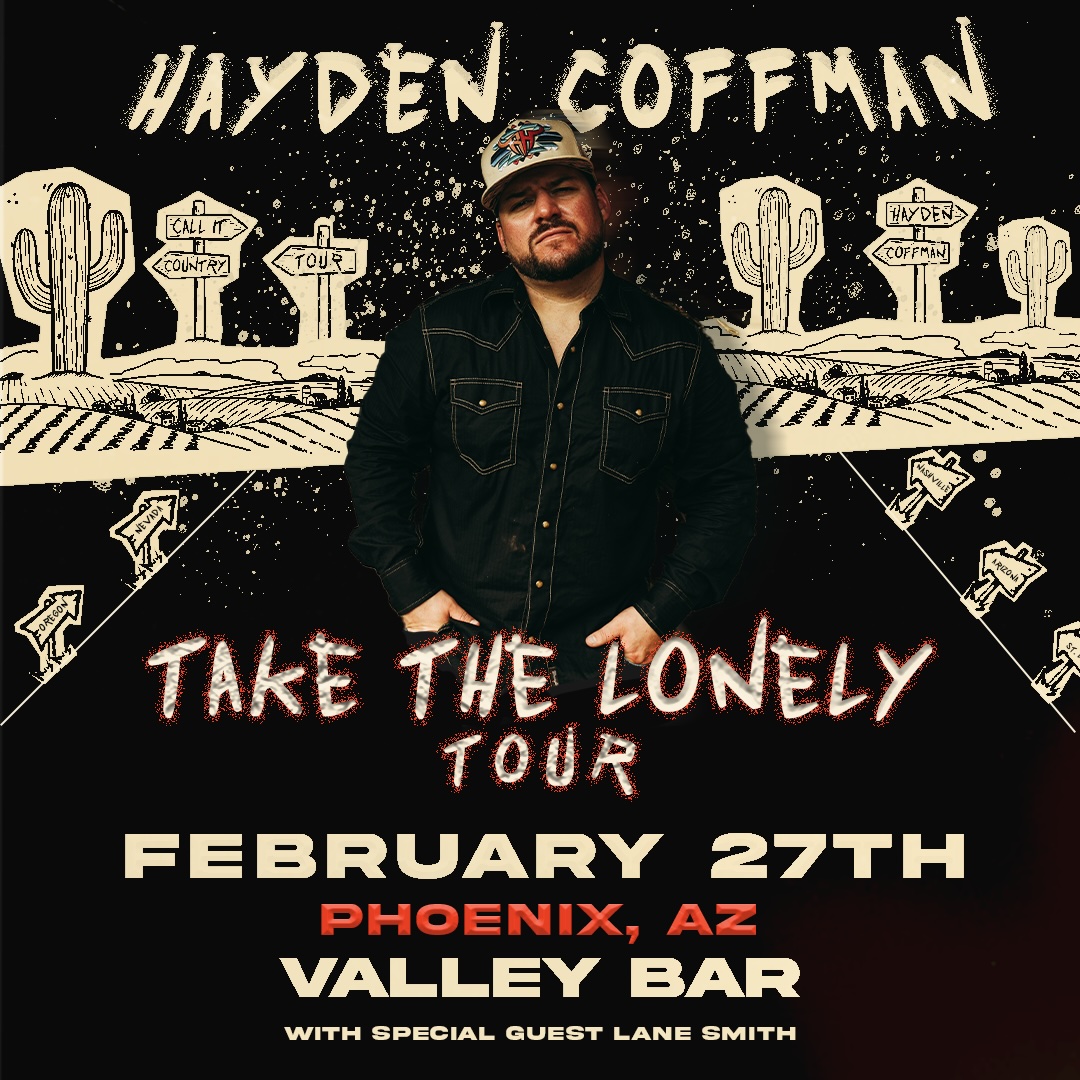 Singer/Songwriter Hayden Coffman is a rising star in the world of country music. With his soulful voice he has captured the hearts of audiences and critics alike with authentic lyrics, smooth vocals, and undeniable charisma. Hailing from Knoxville, TN, Hayden’s journey is deeply rooted in the traditions of the genre, yet he infuses his own unique flair and authenticity into every song he creates. See him live at Valley Bar Phoenix on Friday February 27!