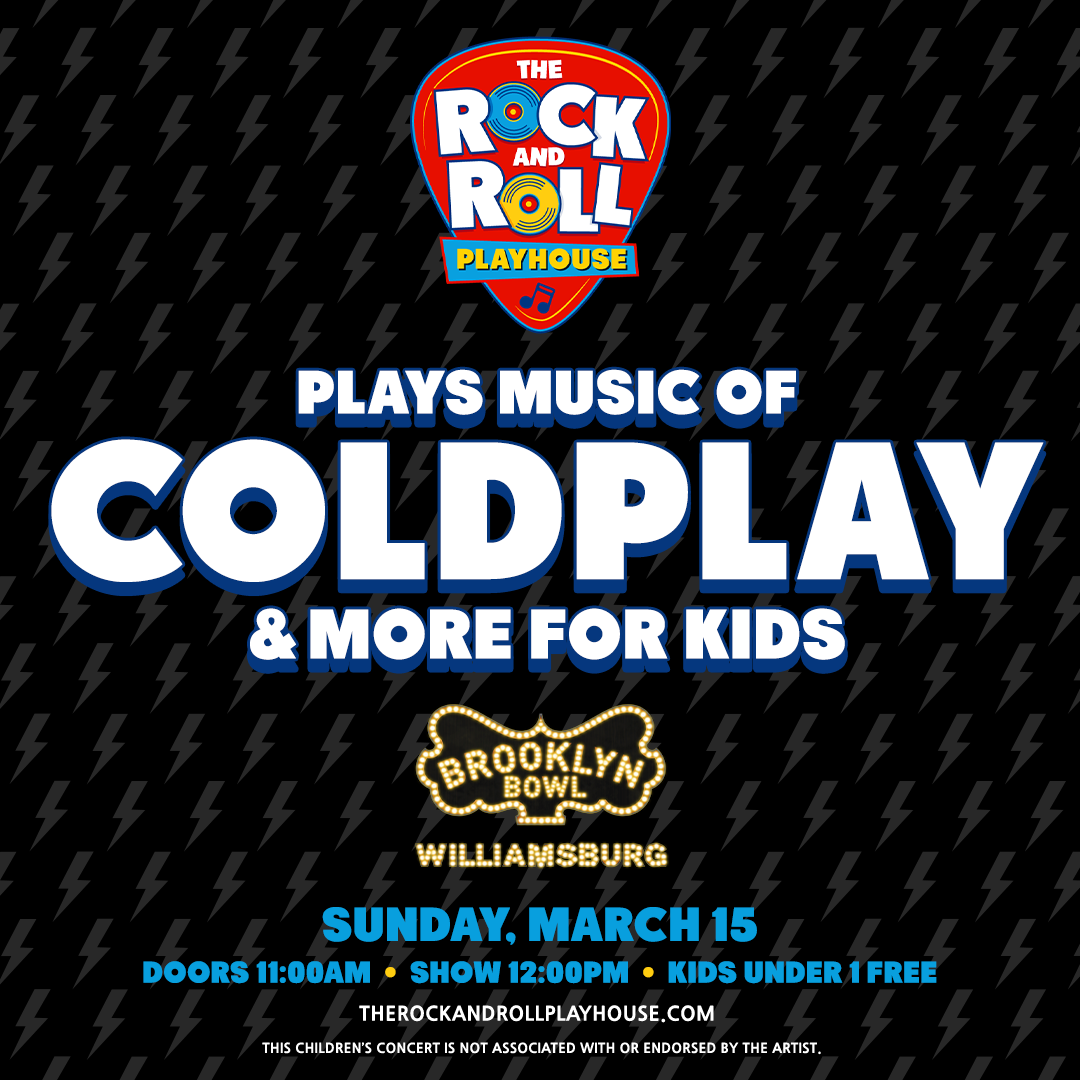 Brooklyn Bowl • Mar 14 The Rock and Roll Playhouse plays the Music of Coldplay for Kids! Let little ones experience Coldplay's anthems in an interactive, family-friendly celebration at Brooklyn Bowl on Saturday, March 14, 2026 1pm doors. Kids under 1 are free!