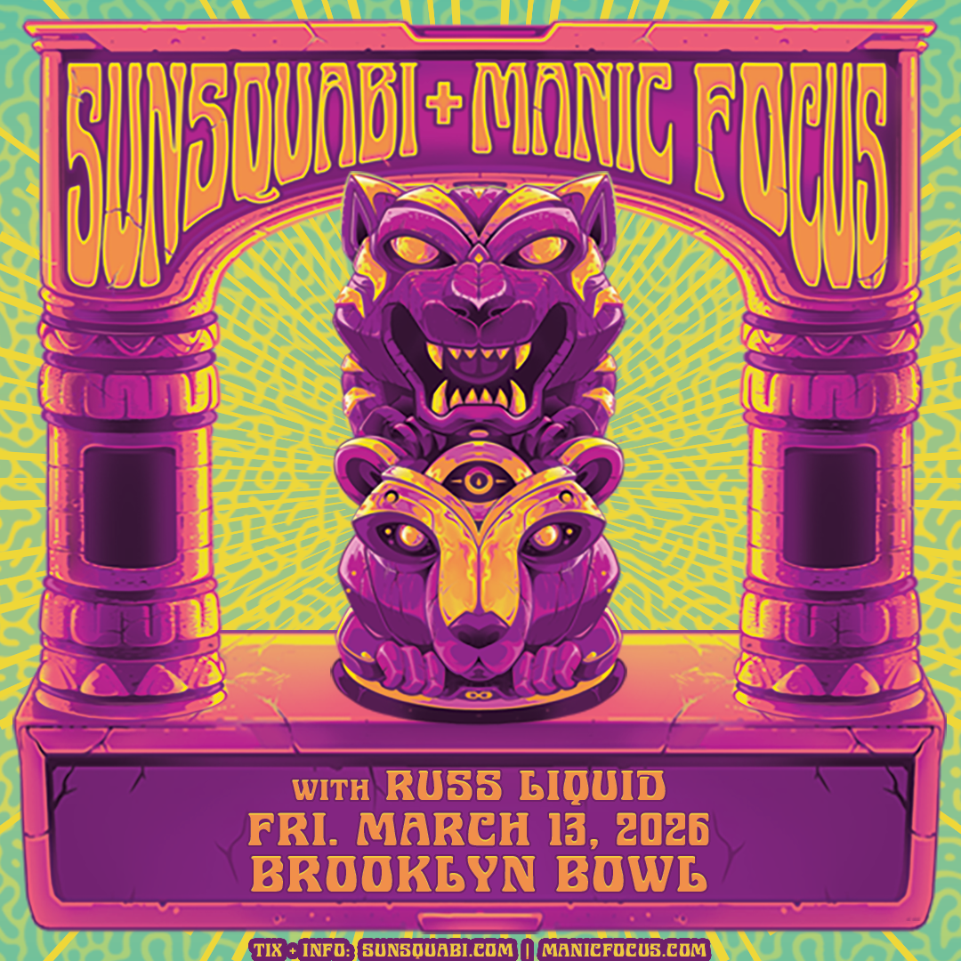 Brooklyn Bowl • Mar 13 Install & Claim SunSquabi, an electro-funk trio from Boulder, Colorado, and Manic Focus, the electronic project of Denver-based producer John "JmaC" McCarten fusing soulful blues with heavy-hitting bass, bring the funk to Brooklyn Bowl on Friday March 13!