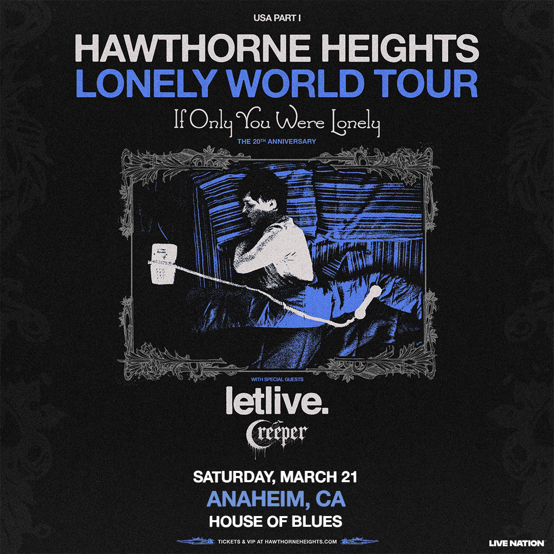 Hawthorne Heights, emo titans from Dayton, Ohio, celebrate the 20th anniversary of their Gold-certified If Only You Were Lonely, which debuted at #3 on the Billboard 200 and featured the hit "Saying Sorry." Relive the anthems that defined a generation live at House of Blues Anaheim on Saturday March 21!