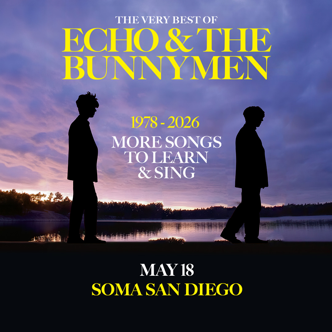 Soma • May 18 Liverpool post-punk pioneers Echo & The Bunnymen, known for hits like "The Killing Moon" and "Lips Like Sugar," bring nearly 50 years of dark, psychedelic rock to Soma San Diego on Monday May 18!