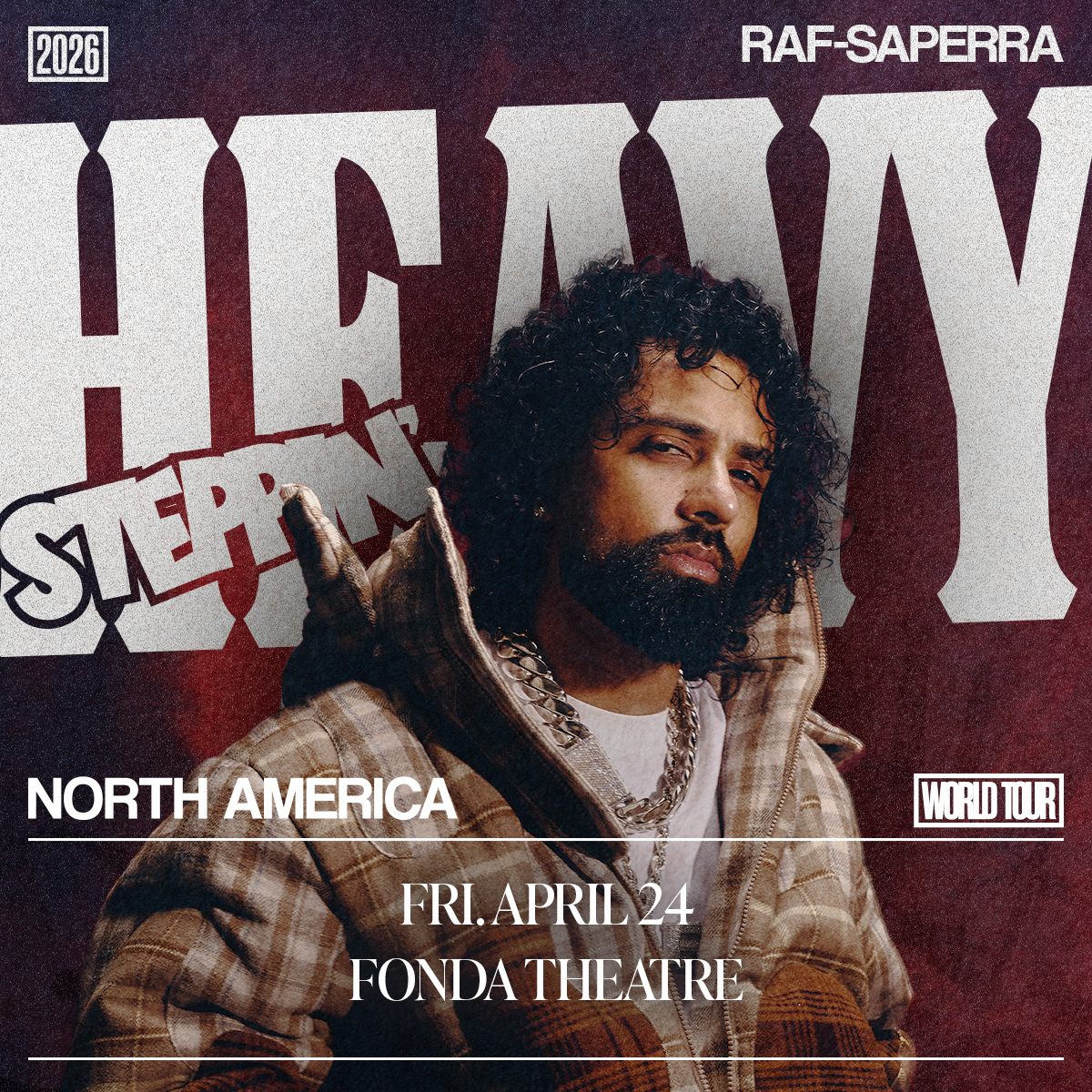 Fonda Theatre • Apr 24 British-Pakistani artist Raf Saperra fuses Punjabi bhangra, hip-hop, and qawwali into a genre-defying sound that Riz Ahmed calls "nostalgia remixing itself." Don't miss the Heavy Steppin Tour at Fonda Theatre on Friday, April 24!
