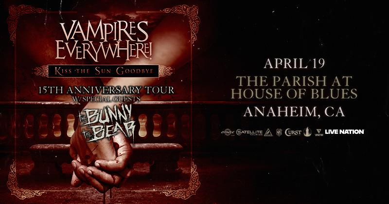 The Parish at House of Blues Anaheim • Apr 19 Vampires Everywhere!, the Hollywood metalcore outfit blending '80s glam with gothic horror themes inspired by The Lost Boys, brings their intense live show to The Parish at House of Blues Anaheim on Sunday April 19!