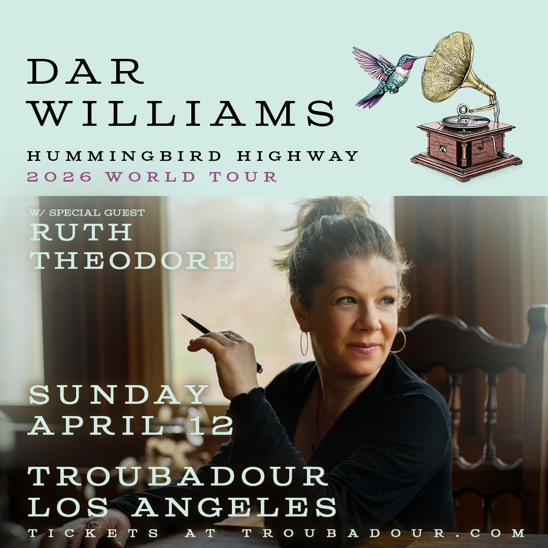 Dar Williams, hailed by The New Yorker as "one of America's very best singer-songwriters," brings her warmly observational folk songs and lyrical wit to the stage. Now touring behind her 13th album, Hummingbird Highway, see her live at Troubadour on Sunday April 12!