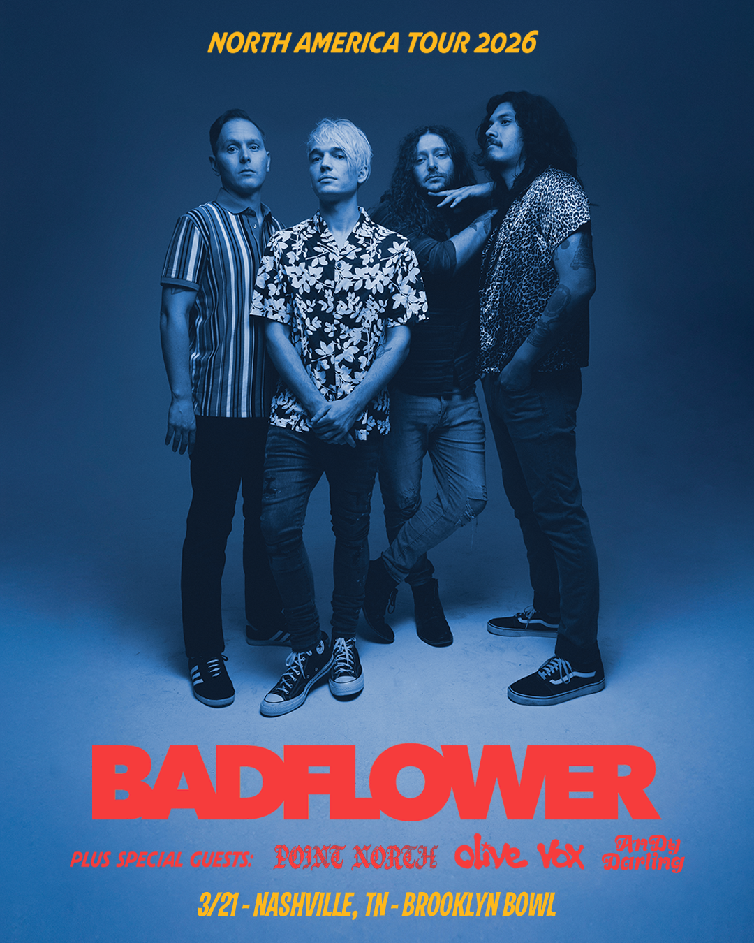 Brooklyn Bowl Nashville • Mar 21 Platinum-selling LA rock band Badflower brings their emotionally raw, hard-hitting anthems to the stage on their No Place Like Home Tour, featuring RIAA Gold-certified hit "Ghost." See them live at Brooklyn Bowl Nashville on Saturday, March 21!