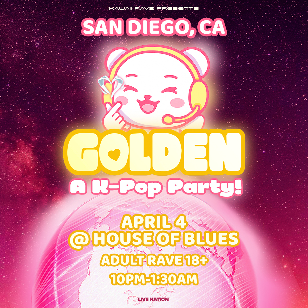 GOLDEN: A K-Pop Party is the ultimate light-up, jump-around rave experience for adults, featuring K-Pop bangers, EDM, hyperpop, and iconic pop anthems. Costumes encouraged—be loud, be silly, be yourself at House of Blues San Diego on Saturday April 4!