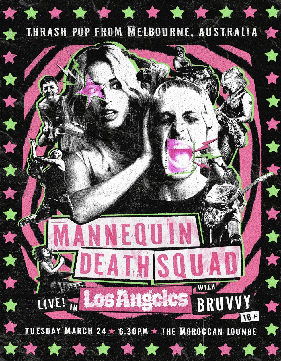 Melbourne's instrument-swapping thrash pop duo Mannequin Death Squad mix catchy melodies with ferocious punk riffs, earning praise from Triple J, Rolling Stone, and KERRANG! Catch their infectiously energetic live show at Moroccan Lounge on Tuesday March 24!