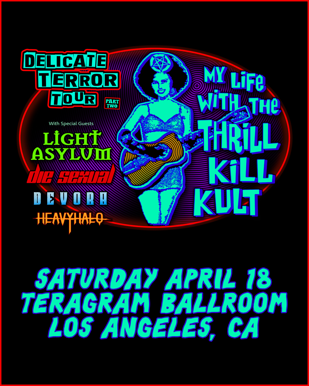Teragram Ballroom • Apr 18 Chicago's industrial disco pioneers My Life with the Thrill Kill Kult have been conjuring sonic tales of sex, blasphemy, and kitschy horror since 1987. Catch their Delicate Terror Tour at Teragram Ballroom on Saturday April 18!