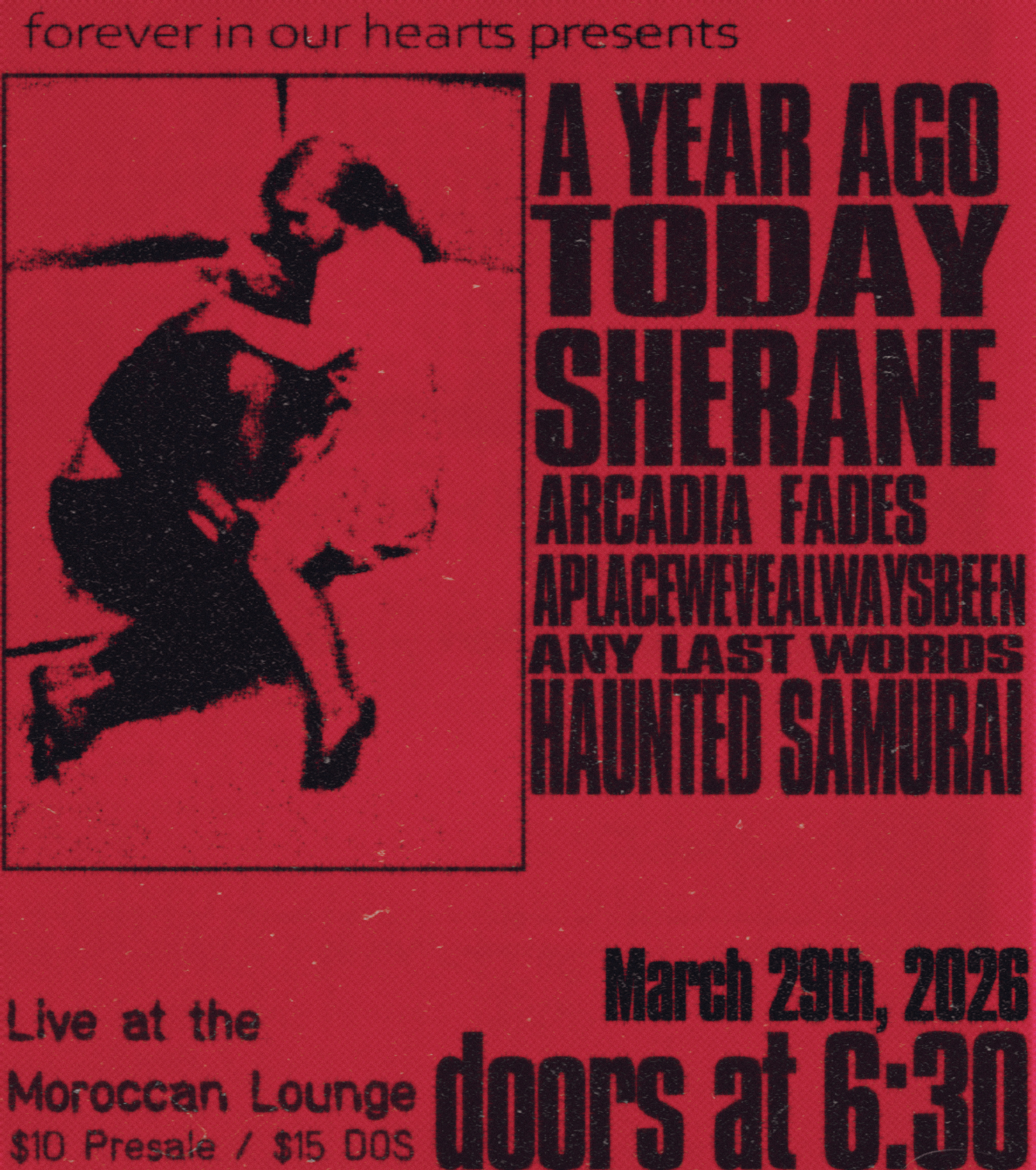 Moroccan Lounge • Mar 29 A Year Ago Today brings ferocious metalcore and emoviolence out of Long Beach, CA, with their sold-out self-titled cassette and 2025's crushing 'My Dear, Farewell' EP on Willmore Records. Catch them headlining Moroccan Lounge on Sunday March 29!