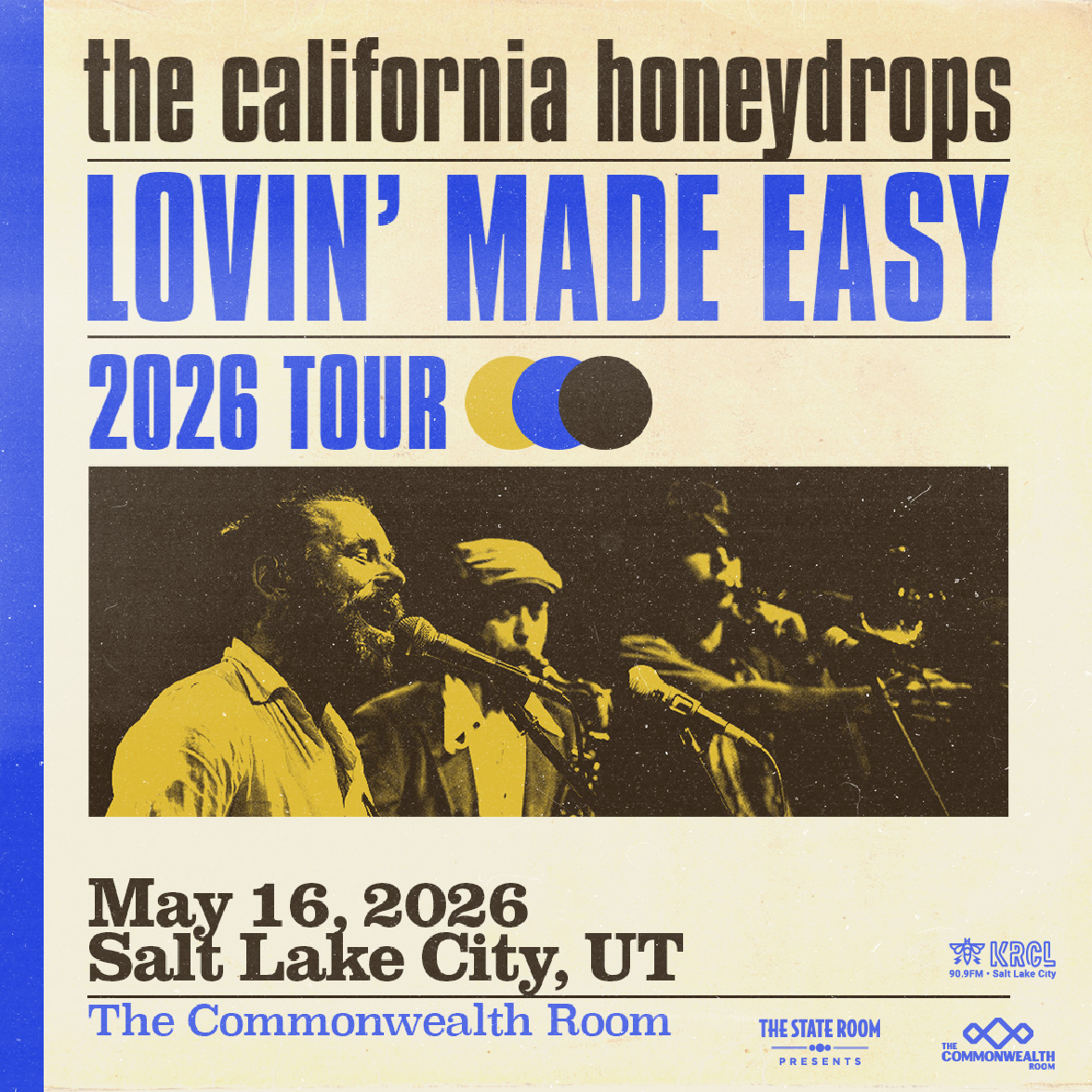 Formed in the subway stations of Oakland by Polish-born vocalist and multi-instrumentalist Lech Wierzynski, The California Honeydrops blend Bay Area R&B, funk, Delta blues, and New Orleans second-line into one irresistible, genre-defying sound. Rolling Stone praised them for evoking "the greasy rumble of Booker T," and they've shared stages with B.B. King, Bonnie Raitt, and Dr. John. Catch them on the Lovin' Made Easy Tour, live at The Commonwealth Room in Salt Lake City on Saturday, May 16!