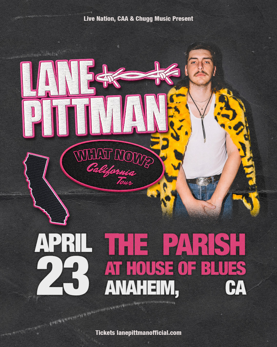 Named Rolling Stone AU's 'Future of Music,' Australian country star Lane Pittman went from a viral Voice audition to stadium tours with Luke Combs and a chart-topping ARIA debut. Now touring his new EP 'What Now?', see him at The Parish at House of Blues Anaheim on Thursday April 23!