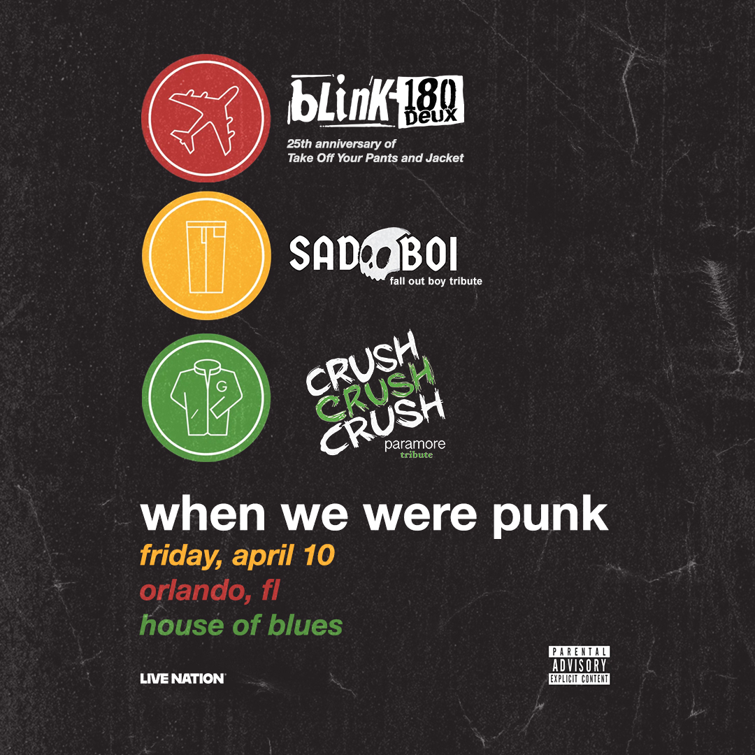 Blink-180 Deux: A Blink-182 Tribute has been delivering the most authentic blink-182 live experience for over 8 years, rocking Florida's iconic venues with undeniable musicianship and signature onstage banter. Catch them headlining When We Were Punk '26 at House of Blues Orlando on Friday, April 10!